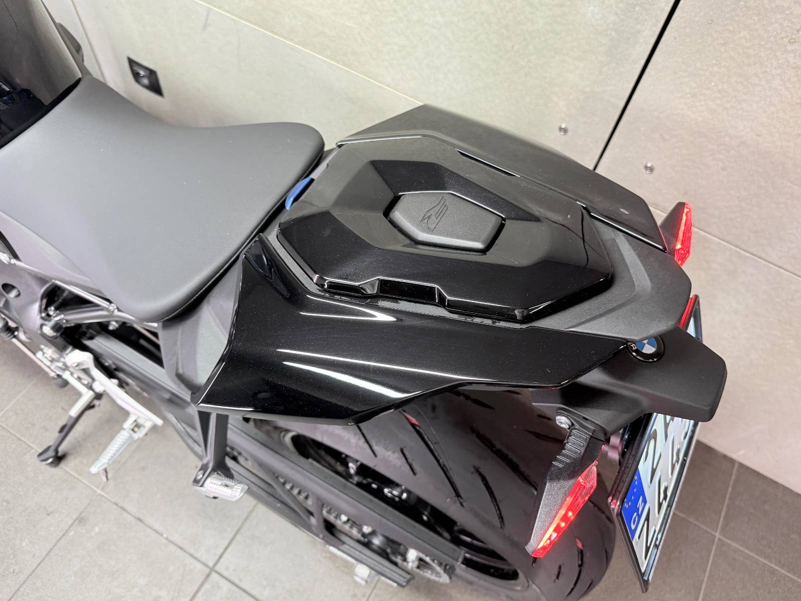 BMW S1000R, r.v. 2025, koupená nová u dealera v Praze, prodloužená 5-letá tovární záruka, dokooupeny packety Comfort a Dynamic, spodní spojler pod motorem, Vybaveno ABS Pro, Quicshifter Pro, Bezklíčové startování, Vyhřívané rukojeti, Paket sedačky spolujezdce, DDC - Elektronická regulace podvozku, Řadící asistent PRO, TPC (kontrola tlaku v pneumatikách), tempomat, vyhřívané rukojeti, zadní krovka sedla spolujezdce a další funkce. Nevhodný dárek (NEJEDNÁ SE O PŘEDVÁDĚCÍ MOTOCYKL)! Najeto pouze 489 km, koupeno před měsícem. Ve stavu uplně nového kusu. Původní cena 498.900 Kč.