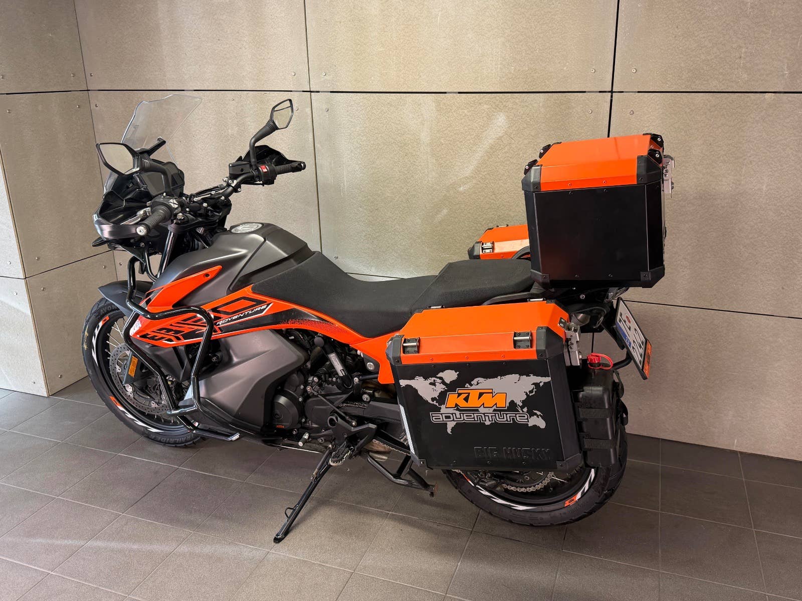 KTM 890 ADVENTURE S, koupená nová u dealera KTM Trojan 1/2023 kde byla i servisovaná, najeto pouze 12960 km, dokoupeno mnoho doplňků, snížení zadní tlumič od WP, snížené sedlo, 3 hliníkové kufry s nosiči a vnitřními taškami, padací rámy, boční kapsy na rám, ochradna předního světla a další drobnosti. Pouze jeden starší majitel od nového, který už jezdil velice málo a tak se rozhodl motocykl prodat. Zeptejte se nás také na výhodné splátky, nově i s nulovou akontací! Schválení trvá 15 minut, a schválení můžeme vyřidit i po telefonu! K danému motocyklu dostanete voucher na 5000 Kč na další stoje z nabídky motopalace. cz a další slevový voucher do eshopu ACI (vybavení, oblečení, moto-kosmetika)! Rezervujte si svůj motocykl včas! Před návštěvou nás prosím kontaktujte, abychom Vám mohli být k dispozici, snažíme se vyhovět i mimo pracovní dobu (večery, víkendy i svátky). Těšíme se na Vás!