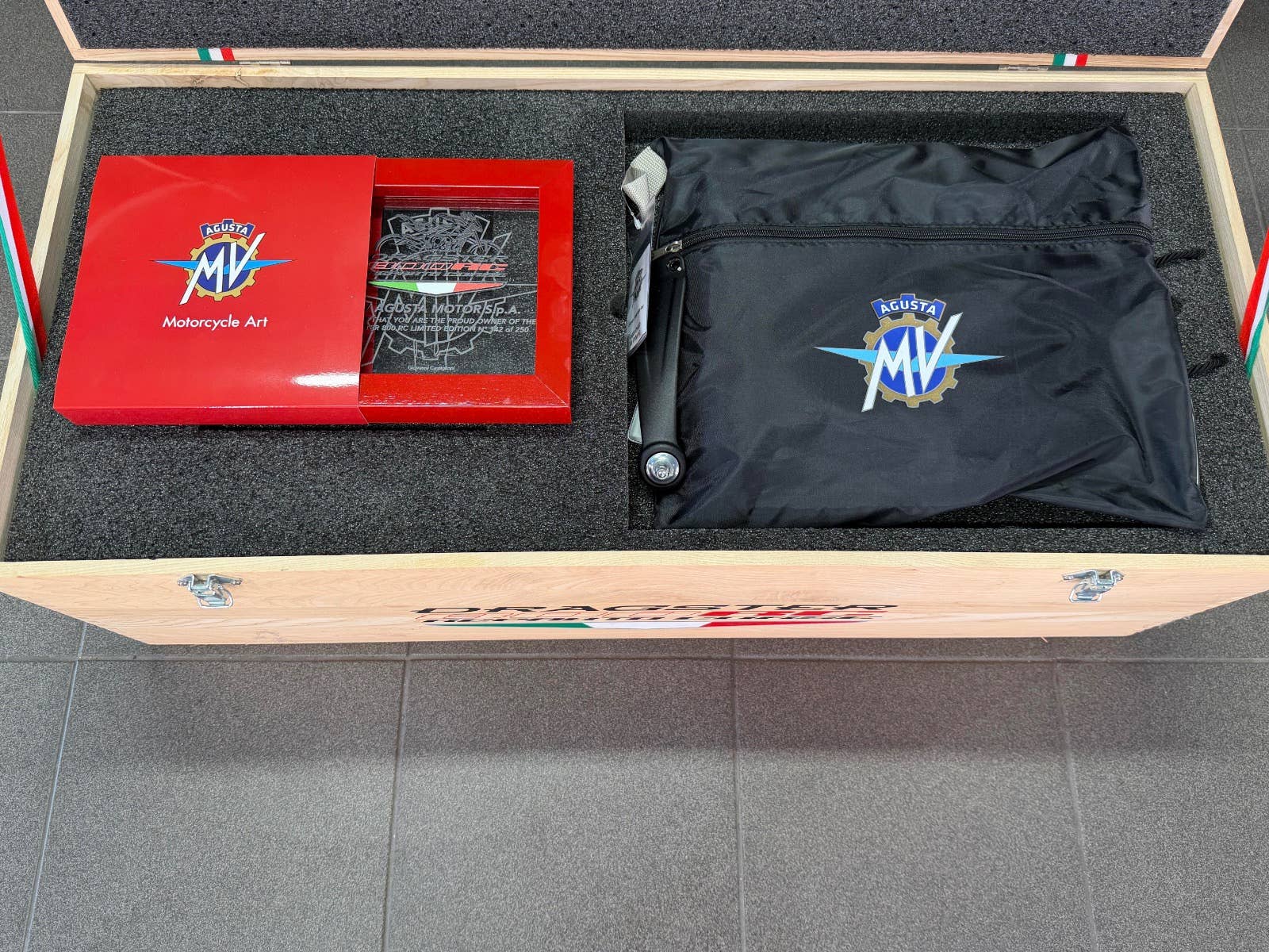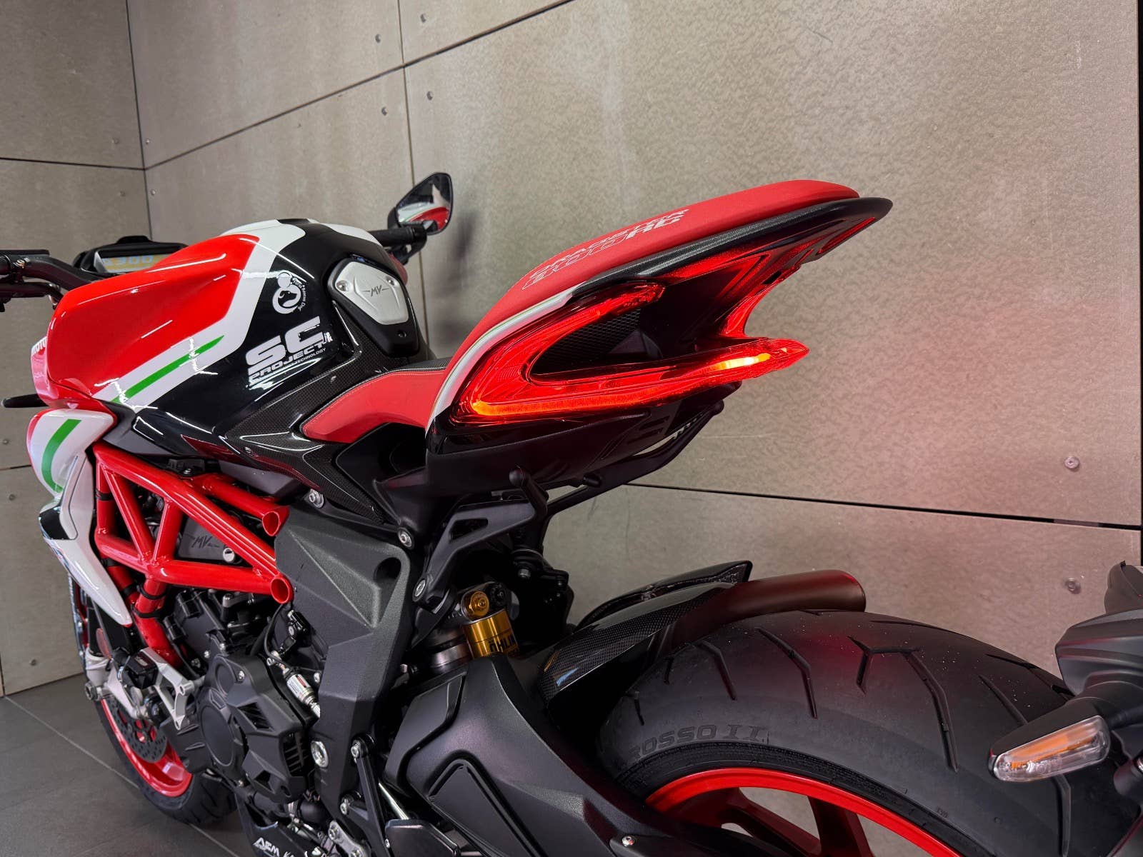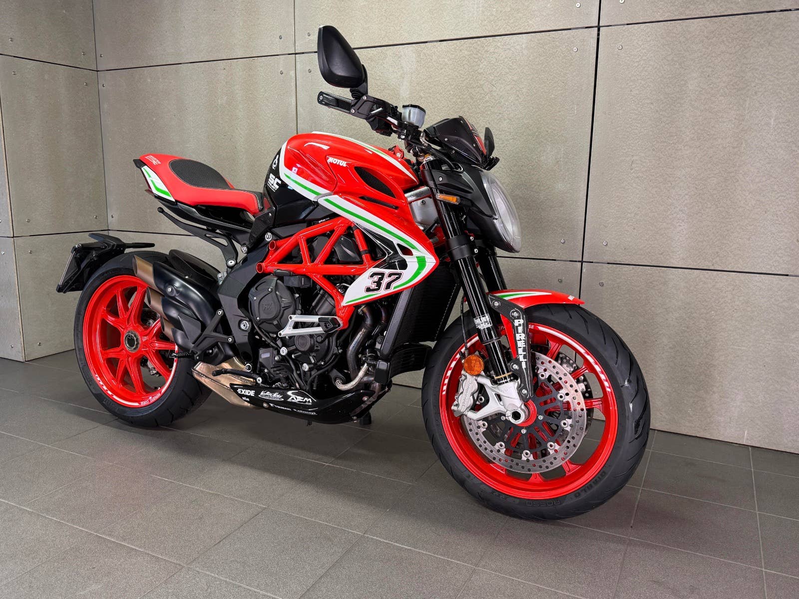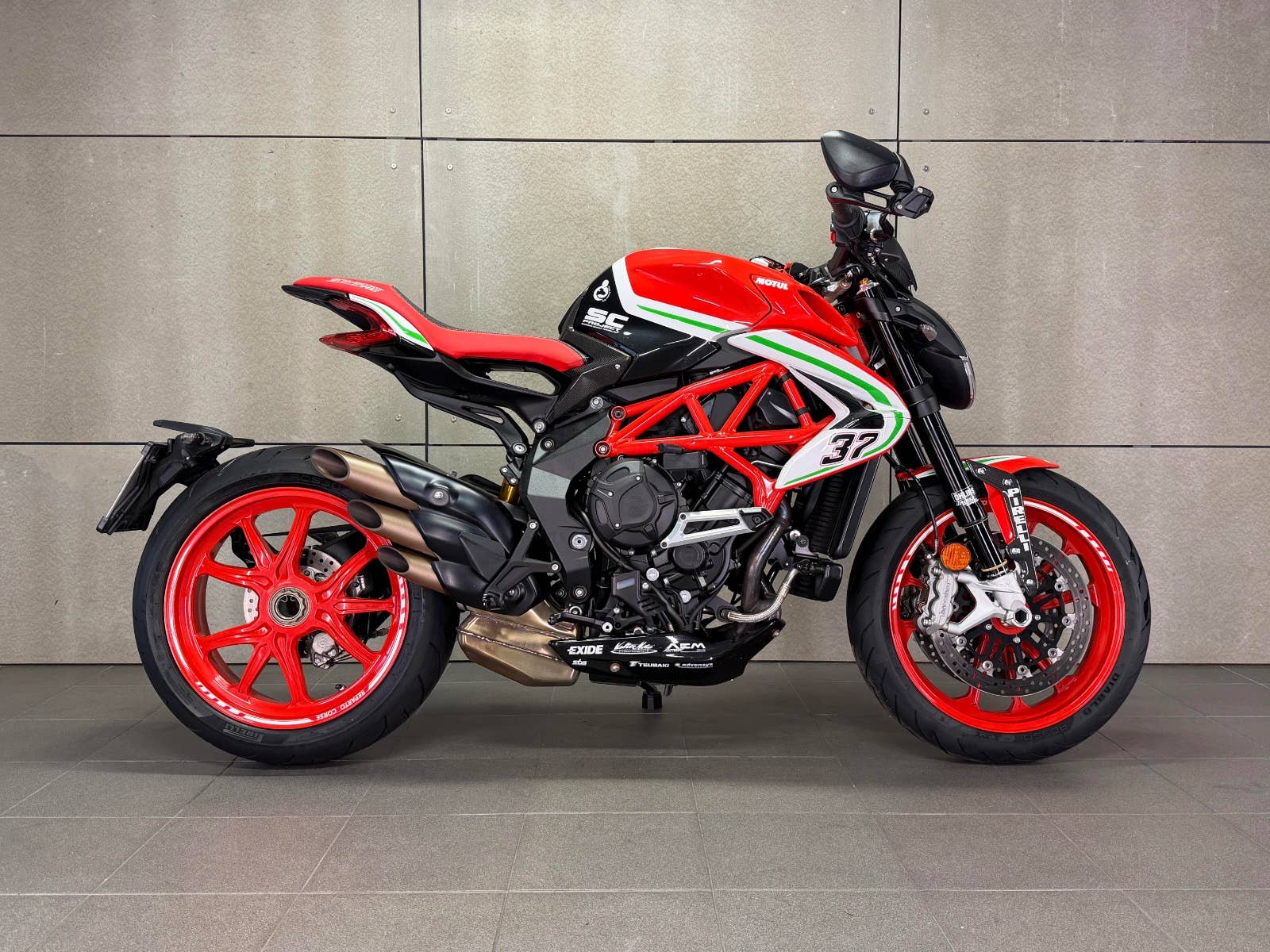 MV Agusta Dragster 800 Reparto Corse s podvozkem ÖHLINS v limitované edici. K motocyklu je dodáván box s plachtou, otevřeným titanovým výfukem SC Project a jednotkou. K motocyklu je i originální koberec na vystavení (poslední 3 roky strávil u sběratele). Na motocyklu je navíc velice výkonný plně nastavitelný podvozek ÖHLINS. Mnoho karbonových dílů, tlumič řízení, skládací zpětná zrcátka. K motocykly jsou také certifikáty k vystavení, veškeré brožury a elektronické manuály na speciální ediční kartě, manuály a mnoho dalších věcí. Provedena uplně čerstvá STK. Zeptejte se nás také na možnost výhodných splátek, nově i s nulovou akontací! Schválení trvá 15 minut, a schválení můžeme vyřidit i po telefonu! K danému motocyklu dostanete voucher na 5000 Kč na další stoje z nabídky motopalace. cz a další slevový voucher do eshopu ACI (vybavení, oblečení, moto-kosmetika)! Rezervujte si svůj motocykl včas! Před návštěvou nás prosím kontaktujte, abychom Vám mohli být k dispozici, snažíme se vyhovět i mimo pracovní dobu (večery, víkendy i svátky). Těšíme se na Vás!